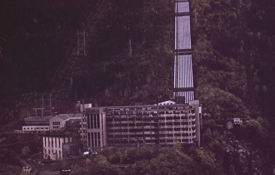 Foto: Bjørgulf Mortensen, 1976. Tatt fra toppen av fjellheisen.