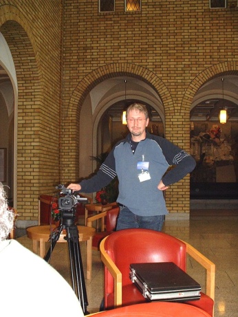 Den dyktige karmera mannen i TV Vision Norge, Leif Inge Sandne hadde det travelt under FMEs aksjon på Stortinget.