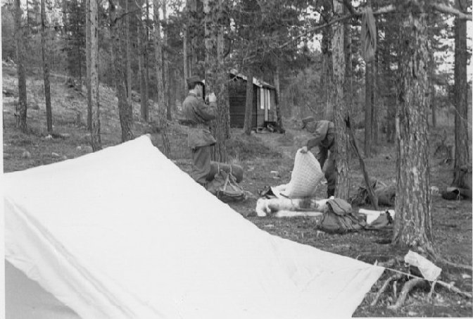 Her er vi på fisketur oppe i Grensefoss, Raijagoski, 1960. På bildet ser vi Ltn. Tharaldsen. Det er ca 50 meter fra elva. Den gamle veien kommer opp rett til høyre. Her fikk pappa en kjempeørret på 5 kg. Hit opp dro vi ofte på fisketur. Det var mange flotte turer med oterfjøla på gummimadrassen ute i strykene. Foto: Oscar Mortensen http://BmOnline.no Design: Bjørgulf©Mortensen |
