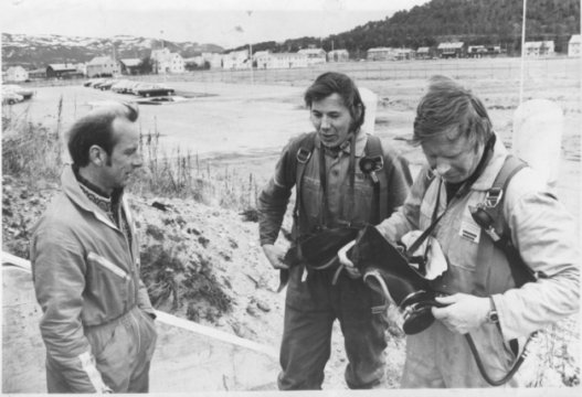 Her er BmOnline i aksjon (midten) i Alta 1978. En røkdykkertest
