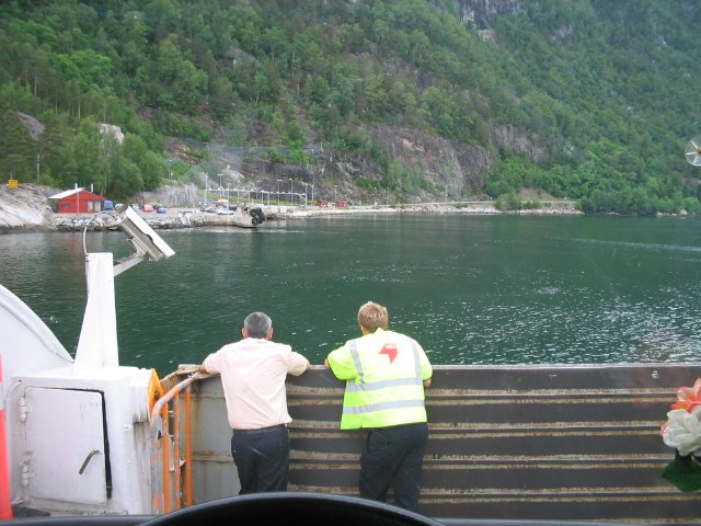 Etter å ha sett Vøringsfossen, drar vi med ferga mot Brimnes.
